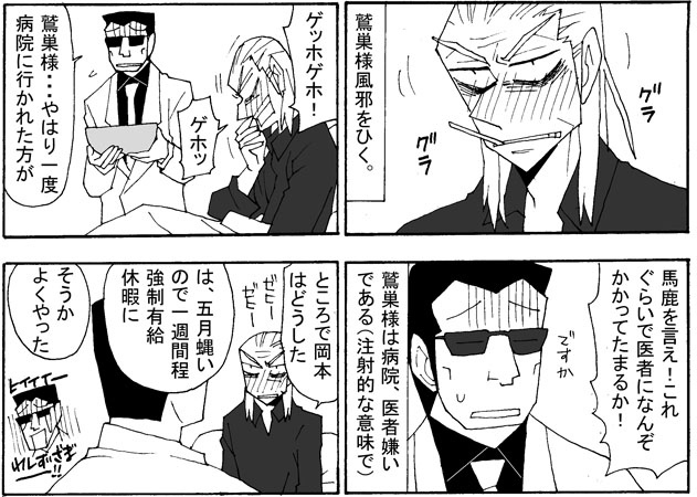 お、あと忘れる所だった。鷲巣さまの風邪も引き続きますよっと。