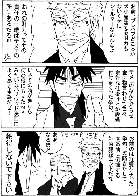 >万が一アカギがシェルター作ったら、血管浮き出る勢いで嫌がって抵抗する鷲巣様を