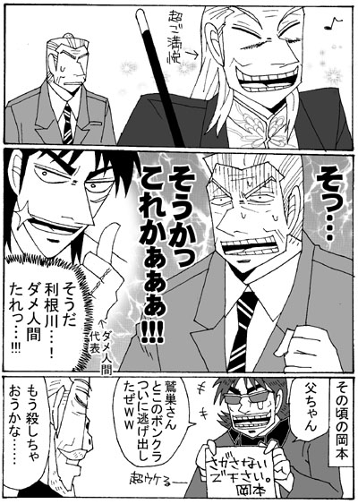 >アカギが背後から近づくと鷲巣さまのトラウマが発動しそうです。アニメの例のシーンの