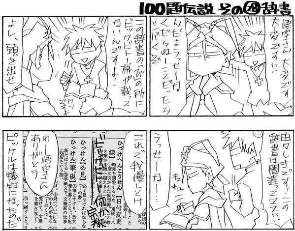 忍が挑戦中の100のお題4コマ、今日はその28 「辞書」 です