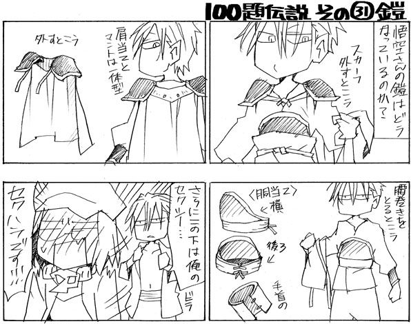 忍が挑戦中の100のお題4コマ。今日はその31 「鎧」 です
