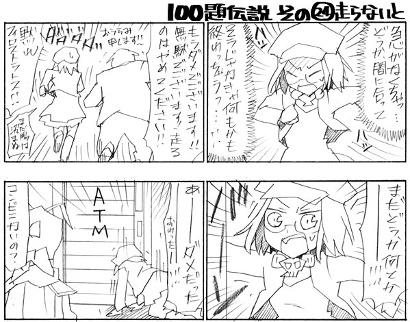 忍が挑戦中の100のお題4コマ。今日はその24 「走らないと」 です