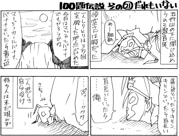 忍が挑戦中の100のお題4コマ。今日はその21 「だれもいない」 です